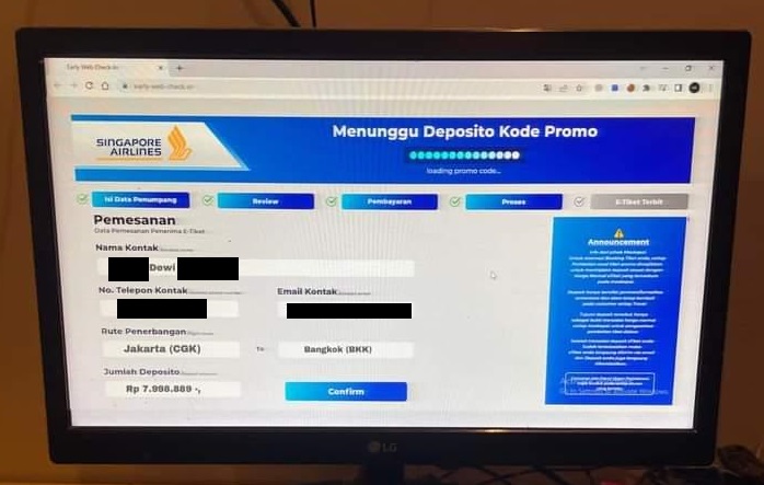 Persis sekali alur ceritanya seperti diatas. bahkan tampilan gambar Menunggu Deposito Kode Promo nya diatas persis sama, hanya beda logo dengan Pesawat Citilink saja. saya sudah trf 2,9 jt (untuk 4 pax). Pas dia tunjukkin screenshot seperti diatas dan minta deposit , saya sudah curiga. Ah sudahlah sudah pasti scam .