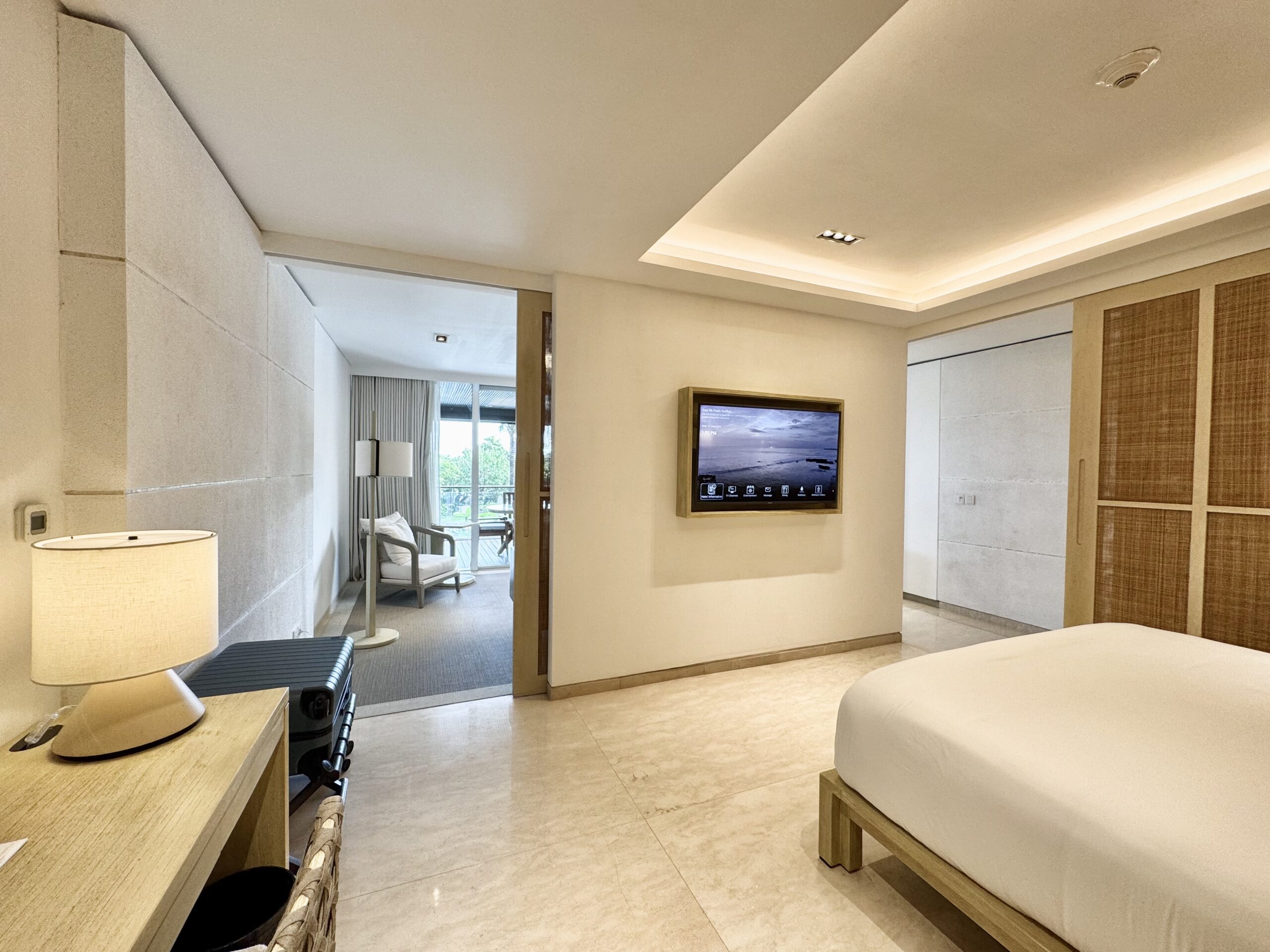 Sesampainya di bangunan Akasa, kami memasuki lift untuk menuju ke lantai dua dan tibalah di kamar kami bernomor 272. Kamar One-Bedroom Residence ini berukuran 90 meter persegi yang semua kamar yang berada di lantai dua memiliki pemandangan ke arah lagoon pool ataupun ke taman.