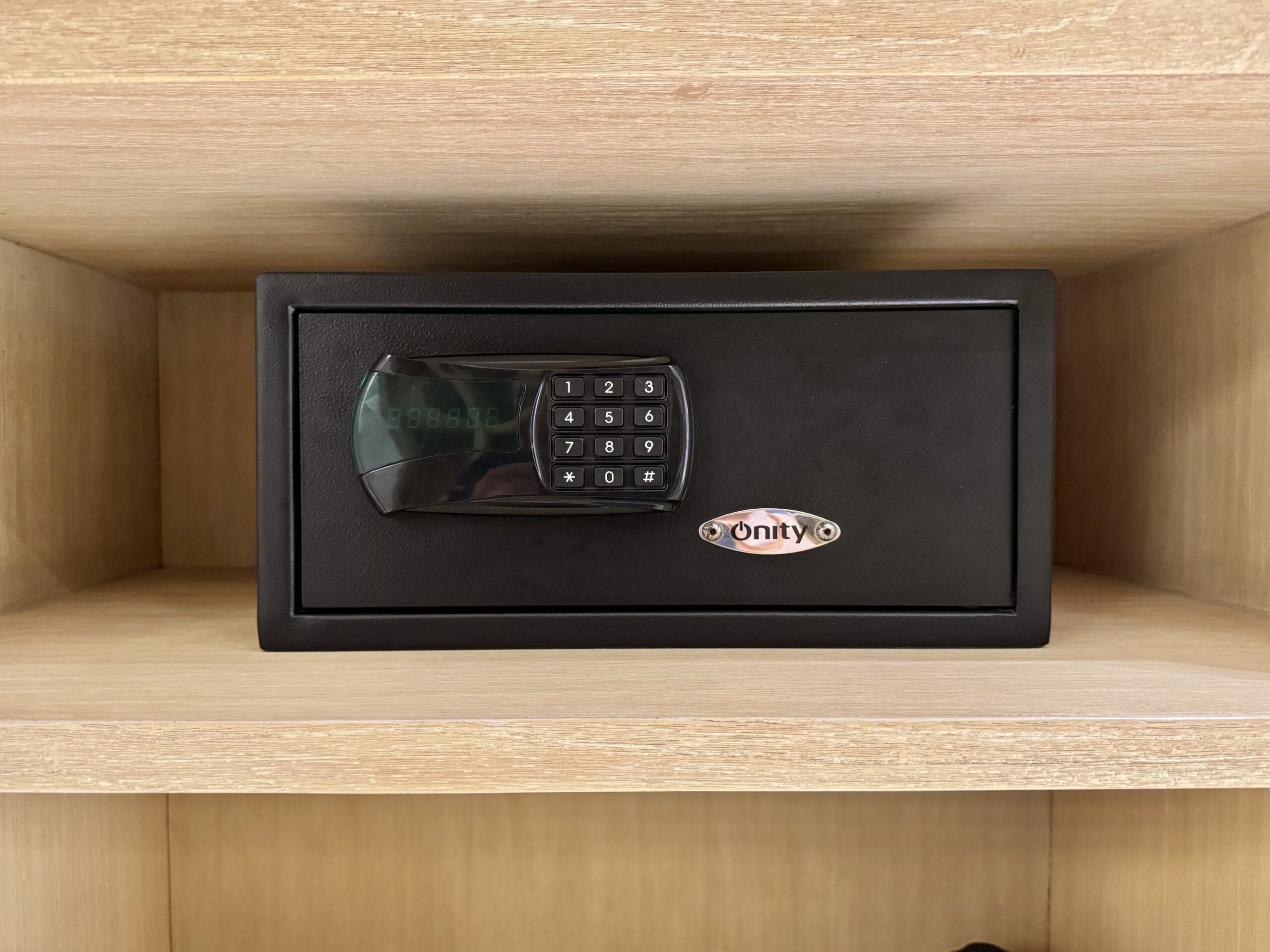 Di dalam lemari pakaian tersedia gantungan pakaian, bath robes, safe deposit box, yoga mats, setrika beserta mejanya. Laundry bags dan kantong sepatu ditempatkan di salah satu rak dorong tertutup yang juga berada di area ini.