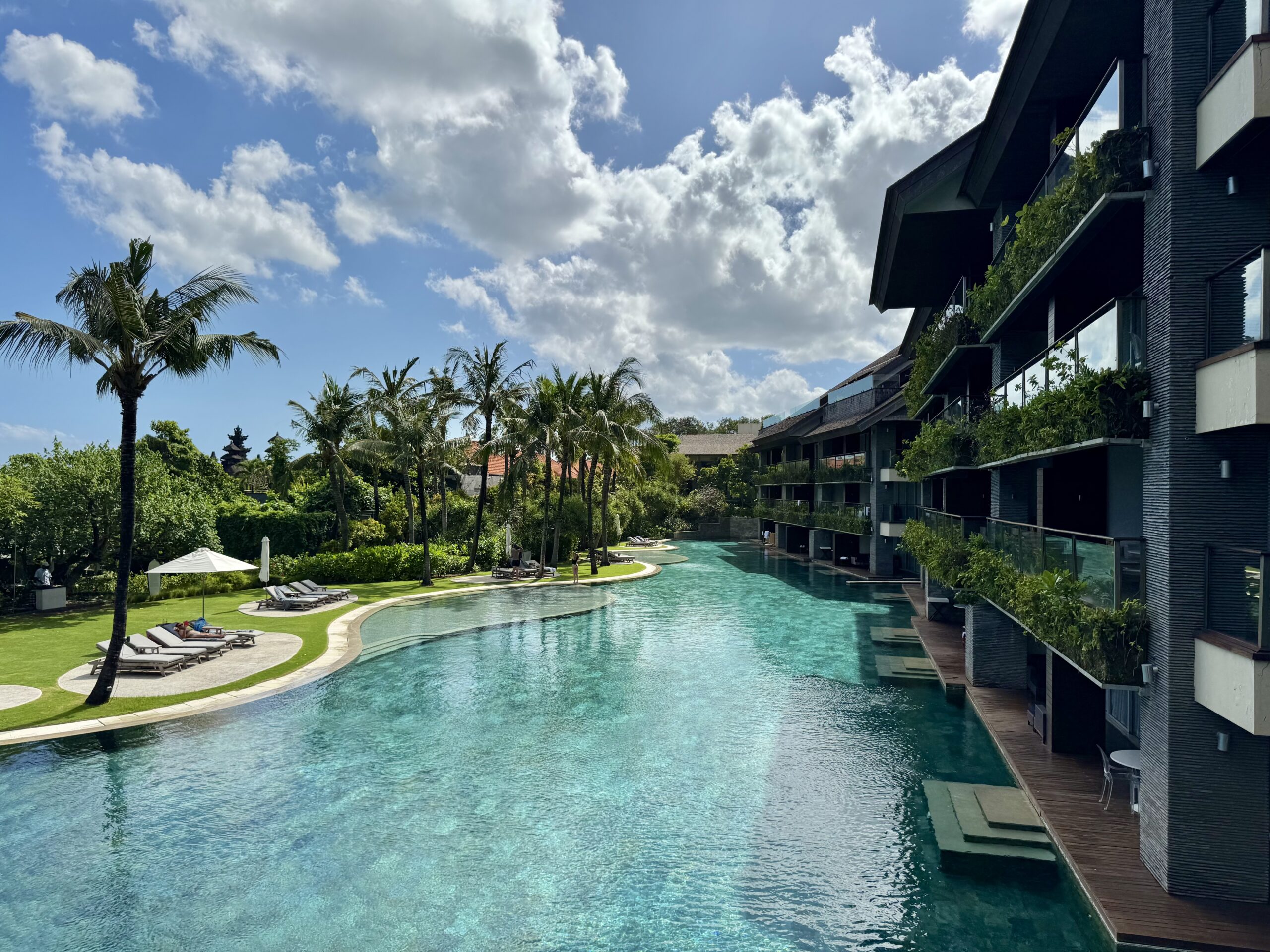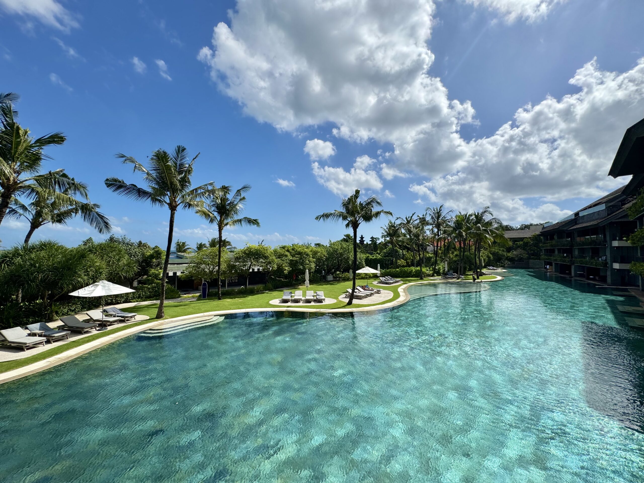 Kolam renang berbentuk laguna ini berukuran besar dan adalah kolam yang sama yang menjadi pemandangan dari kamar One-Bedroom Residence yang kami tempati. Jika Anda menginap di tipe residence dan memilih tipe One-Bedroom Lagoon Pool Residence maka kamar Anda memiliki akses langsung ke lagoon dari balkoni kamar.