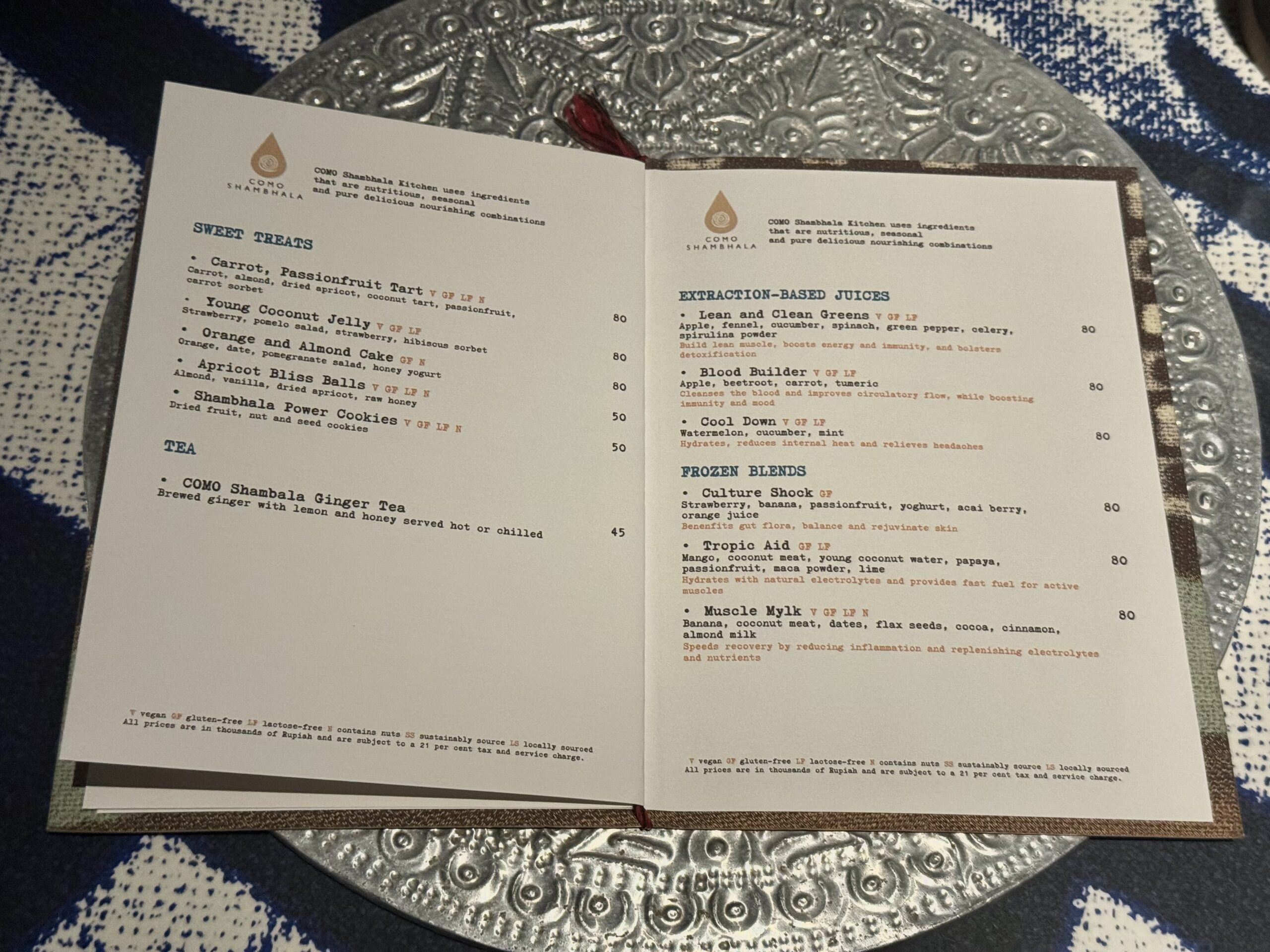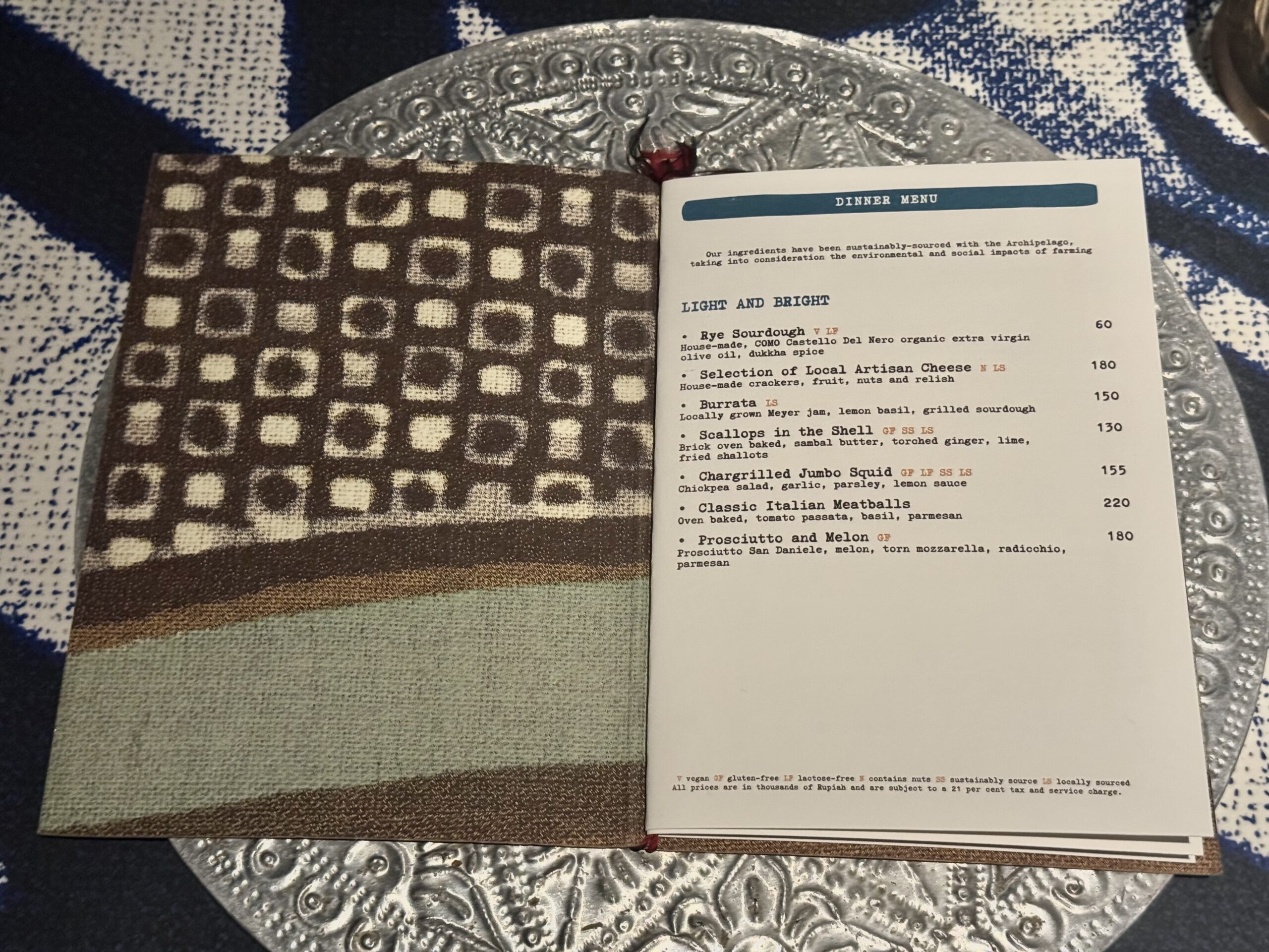Di sebuah kesempatan, kami menerima undangan untuk menikmati santapan makan malam di COMO Beach Club, makan malam sepenuhnya dihidangkan secara a la carte. Makanan yang ditawarkan di sini adalah makanan internasional dan juga khas Indonesia. Anda juga dapat memilih hidangan dari COMO Shambhala Kitchen yang dipersiapkan secara khusus dengan bahan-bahan musiman yang memiliki nilai nutrisi tinggi.