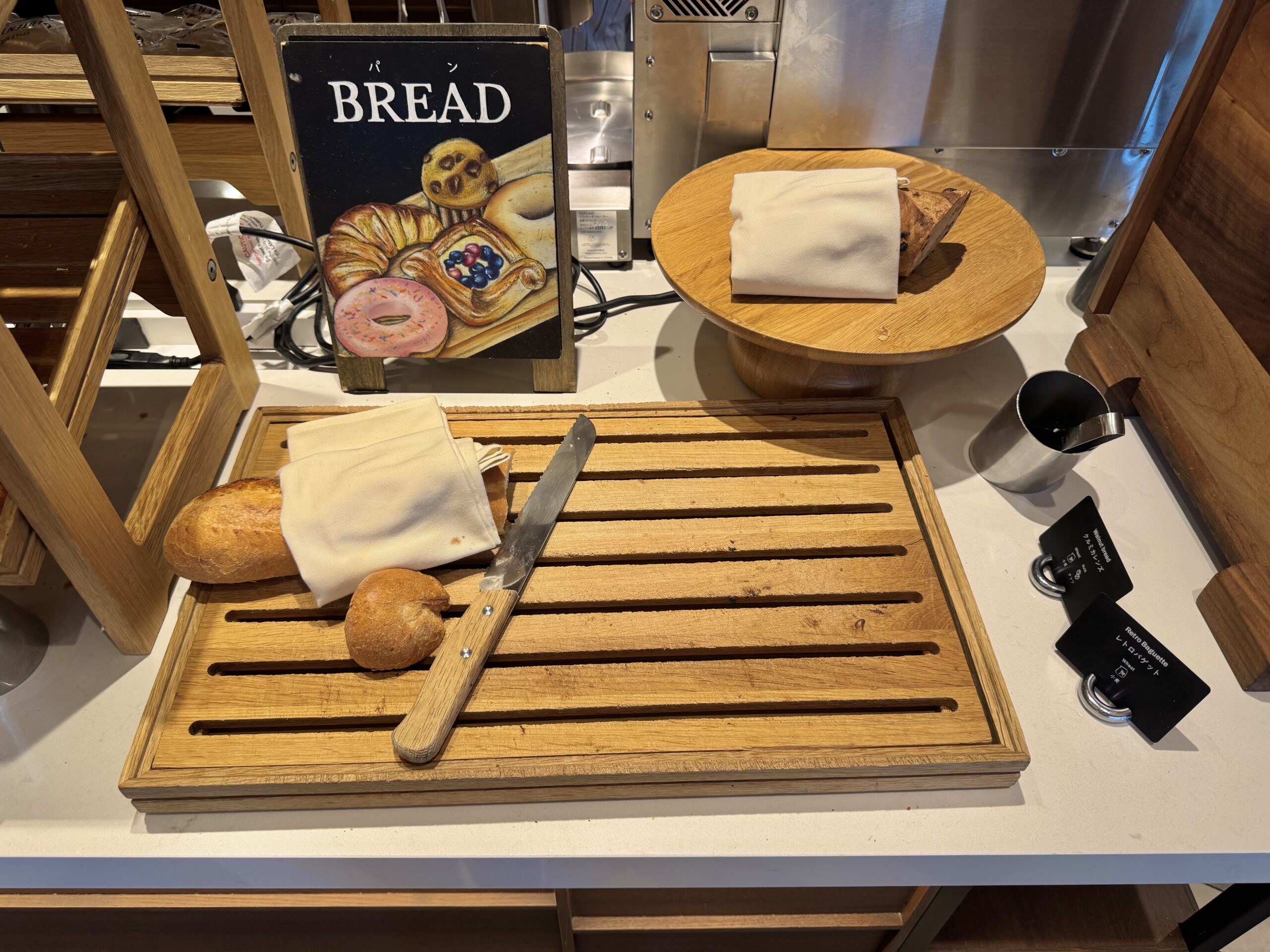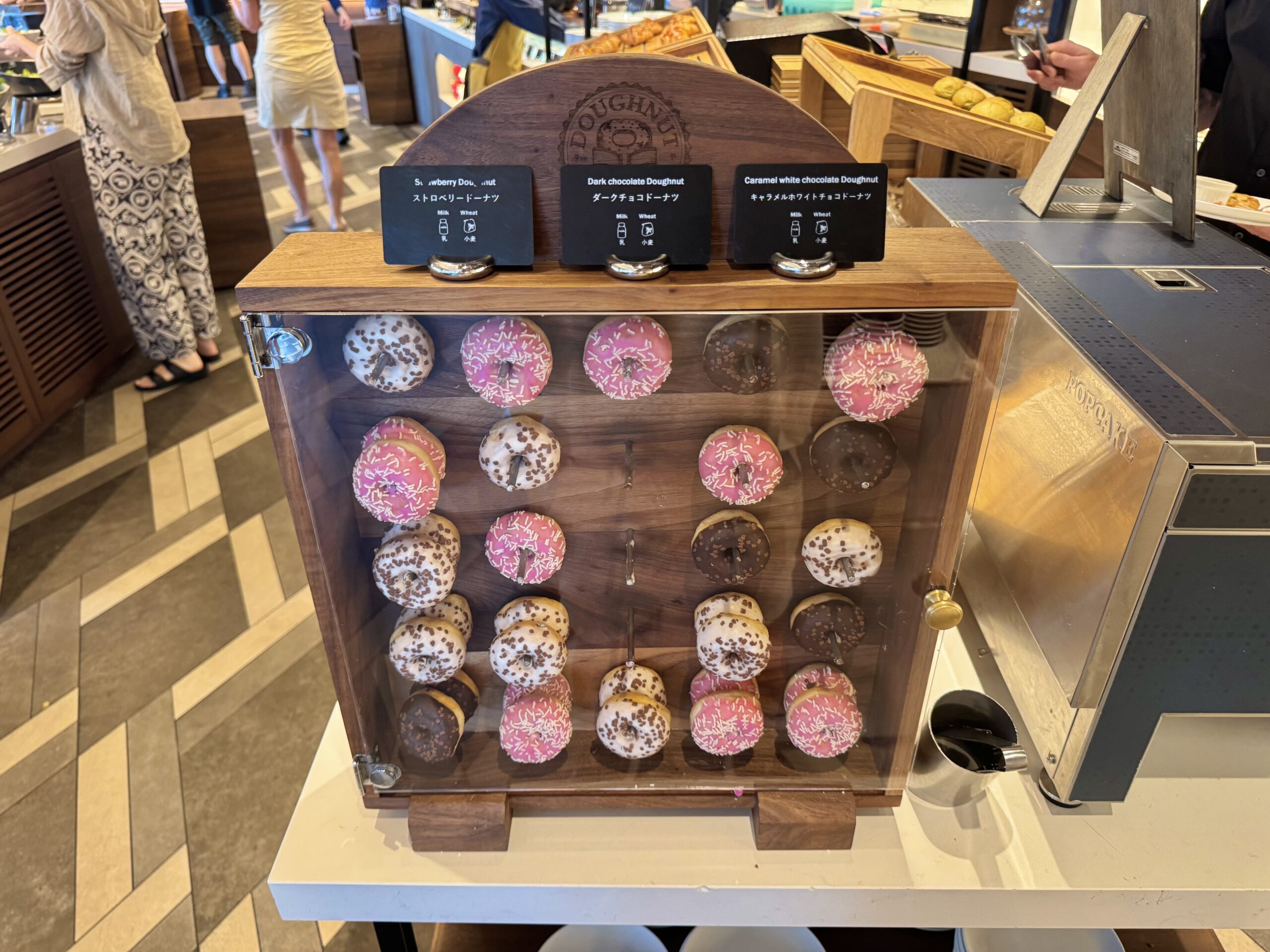 Di tengah area buffet terdapat sebuah island dengan berbagai macam pilihan roti baik roti-rotian tawar, pastries, roti bebas gluten, donat, dan juga mesin pembuat pancake secara otomatis.