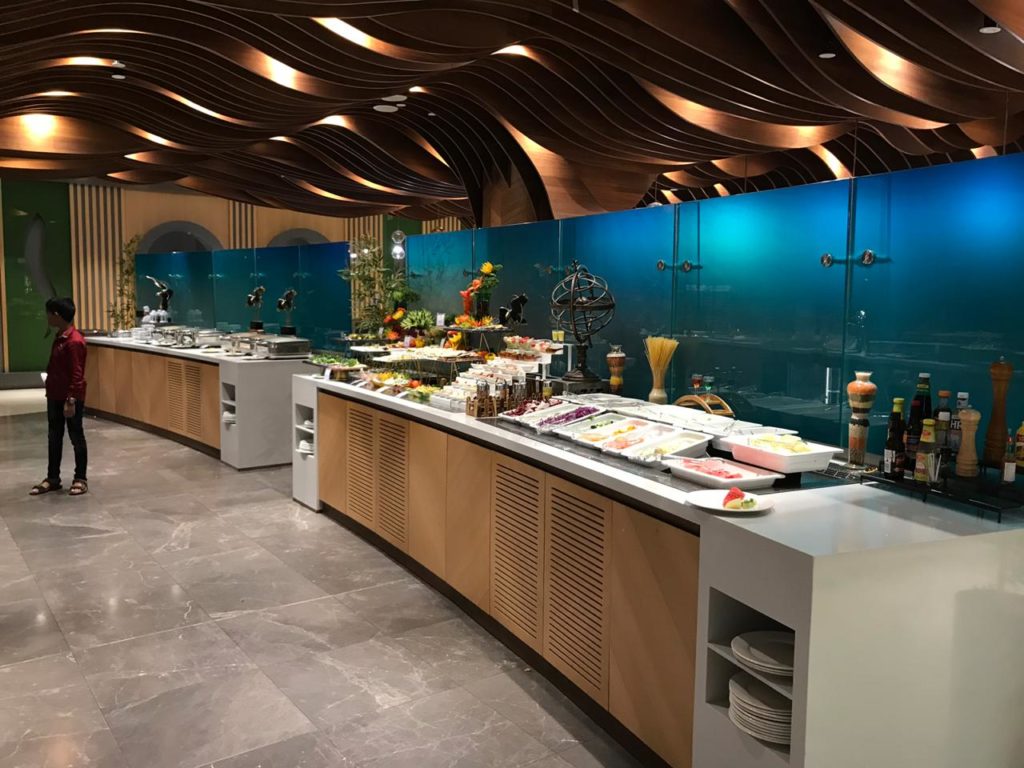 Makanan tersebar di beberapa area yang bisa ditemukan dengan mudah oleh pengunjung lounge. Sajian makanan akan berbeda-beda mengikuti jam waktu sarapan, makan siang dan makan malam.