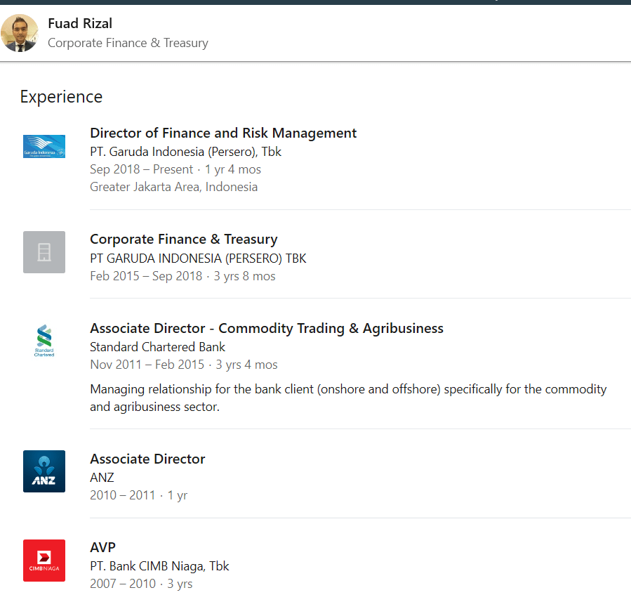 Karirnya terus meningkat sehingga dipercaya menjadi Director of Finance & Risk Management di Garuda Indonesia sebelum akhirnya sekarang dipercaya kembali menjadi Plt Dirut Garuda Indonesia. Sekilas, beliau mengingatkan saya pada mantan Dirut Garuda Indonesia, Pahala Mansury yang diberhentikan karena justru mencoba menekan kerugian Garuda Indonesia.
